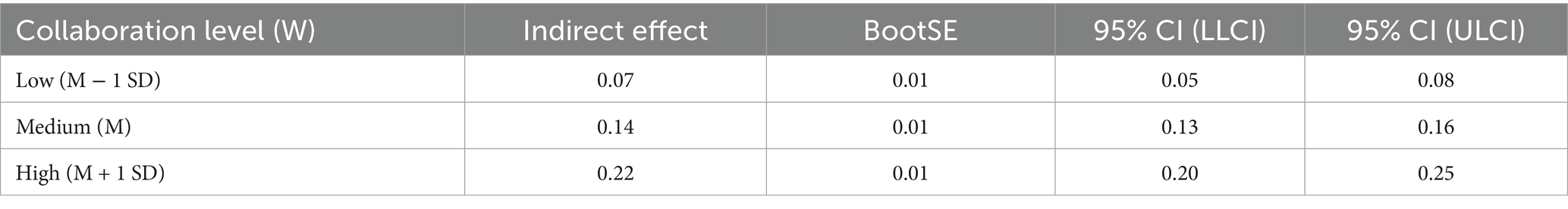 Further conditional indirect effect analyses demonstrated that at low (M − 1 SD), moderate (M), and high (M + 1 SD) levels of health behavior, the indirect effects of satisfaction on health beliefs via quality of life were 0.07, 0.14, and 0.22, respectively. All bootstrap confidence intervals excluded zero, confirming that the mediation effects were significant across different levels of the moderator. The index of moderated mediation was 0.001, with a 95% CI of [0.00, 0.01], further supporting the presence of a significant moderating effect of health behavior on the indirect pathway linking health education satisfaction to health beliefs through quality of life (Table 7).