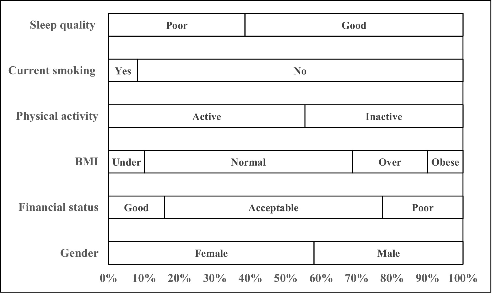 Financial status was self-rated on a five-point Likert scale ranging from “very poor” (1) to “very good” (5). Due to low frequency in extreme categories, responses were collapsed into three categories: good (very good and good), acceptable (acceptable), and poor (very poor and poor) (12). Self-perceived financial condition has been widely used in youth health research as a valid proxy for actual socioeconomic status (13), especially where objective financial data is difficult to obtain.