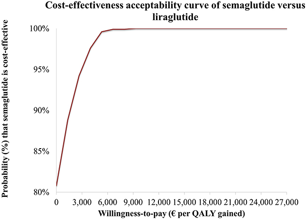 Figure 4. Cost-effectiveness acceptability curve (CEAC) for semaglutide 2.4 mg vs. liraglutide 3 mg.