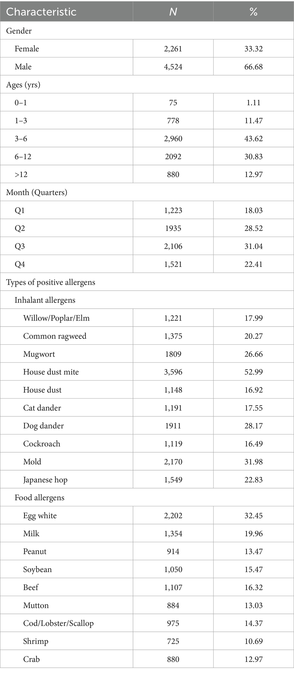 A retrospective analysis was performed by collecting the demographic data and sIgE test results of 6,785 pediatric cases who were diagnosed with bronchial asthma at the Children’s Hospital affiliated to Shandong University during January 2018 to January 2025. The study was approved by the Ethics Committee of Children’s Hospital affiliated to Shandong University.