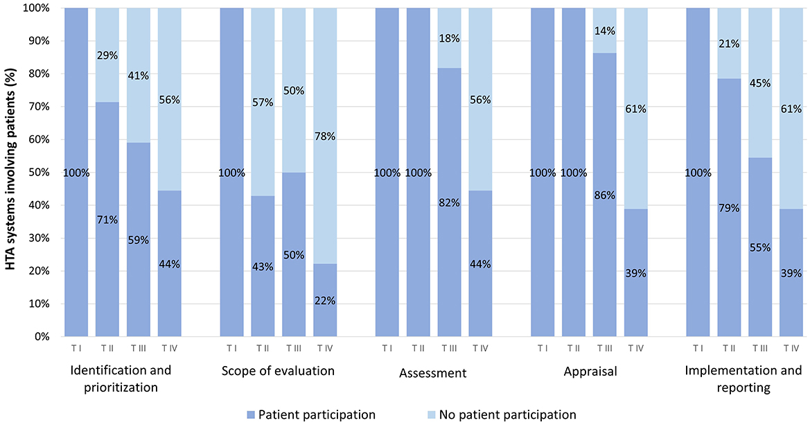 Results: Many HTA systems include patient participation, but the level of involvement shows substantial variation across systems and tends to be comparatively modest. Some systems demonstrate active engagement throughout the process, while others show limited participation.