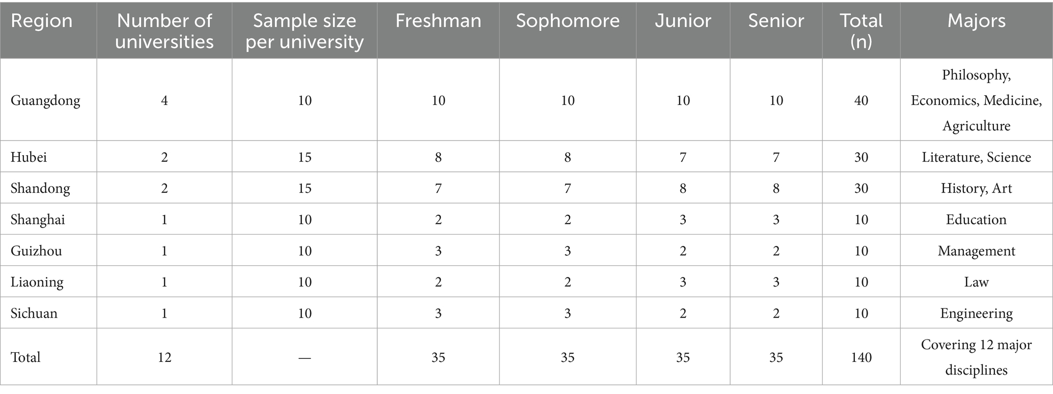 Sampling followed established QCA case selection principles, ensuring diversity across geographical regions (North, South, Central, East, West) and all 12 academic disciplines. All participants were non-sports major female students, meeting homogeneity requirements. The selected universities represented specialized institutions with distinct academic profiles, providing typical cases. The final sample was evenly distributed across academic years, with rigorous data checks ensuring case accessibility and analytical validity.