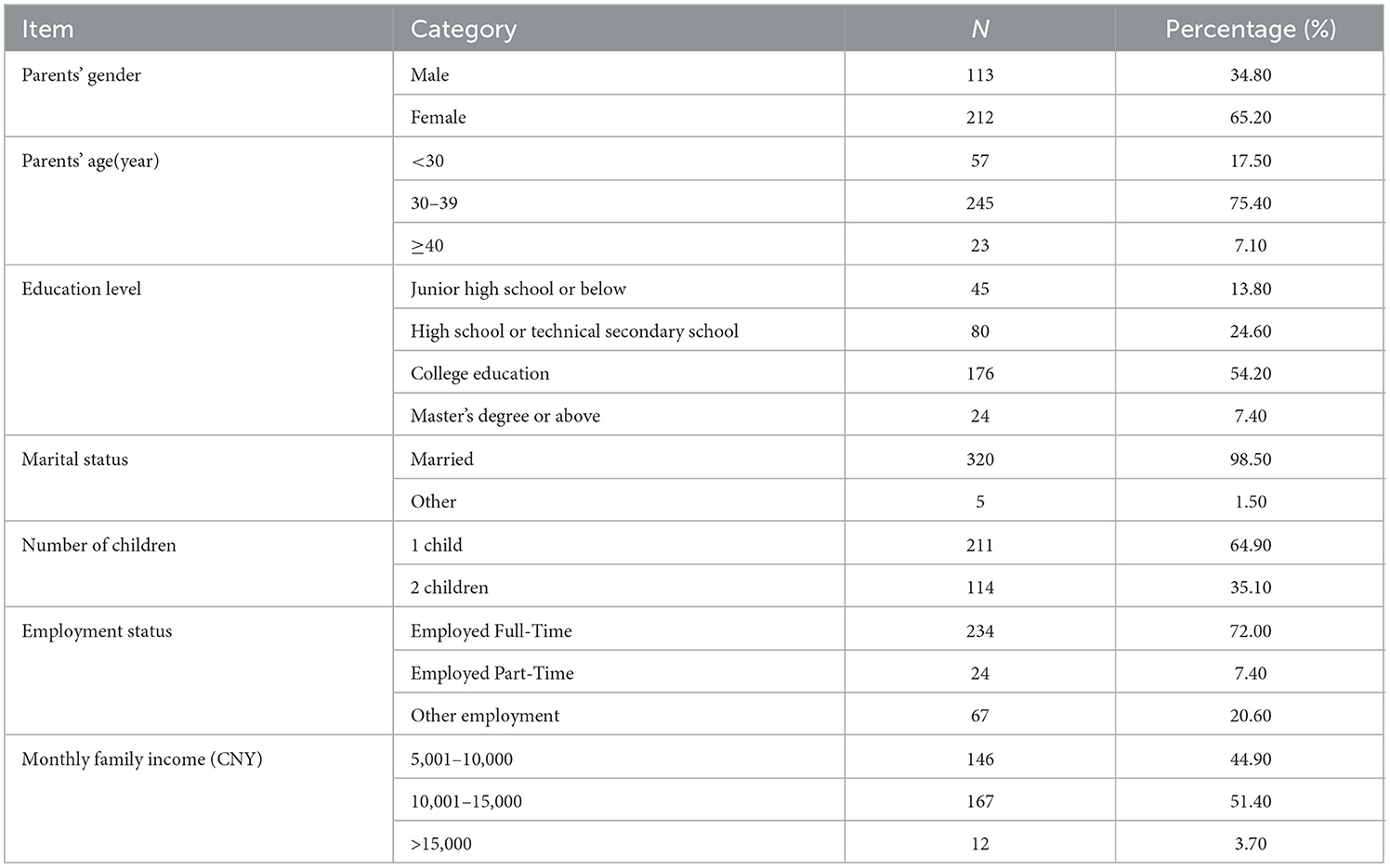 Exclusion criteria: parents with mental illness or other severe chronic conditions that prevented them from completing the questionnaire independently; parents or their children who had experienced major life changes or stressful events (e.g., the death of a family member, a serious traffic accident, etc.) within the past 3 months.