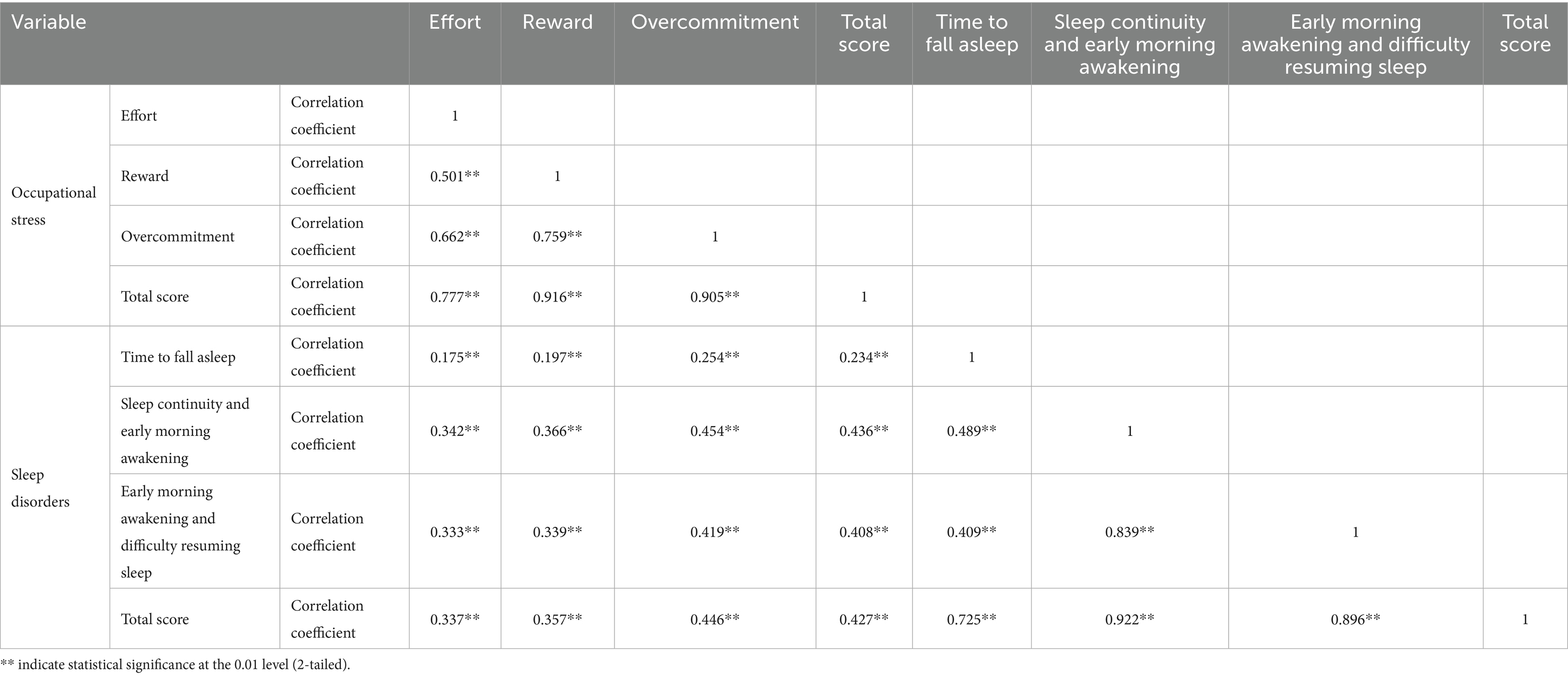 3.3.3 Results on the correlation between occupational stress and sleep disorders