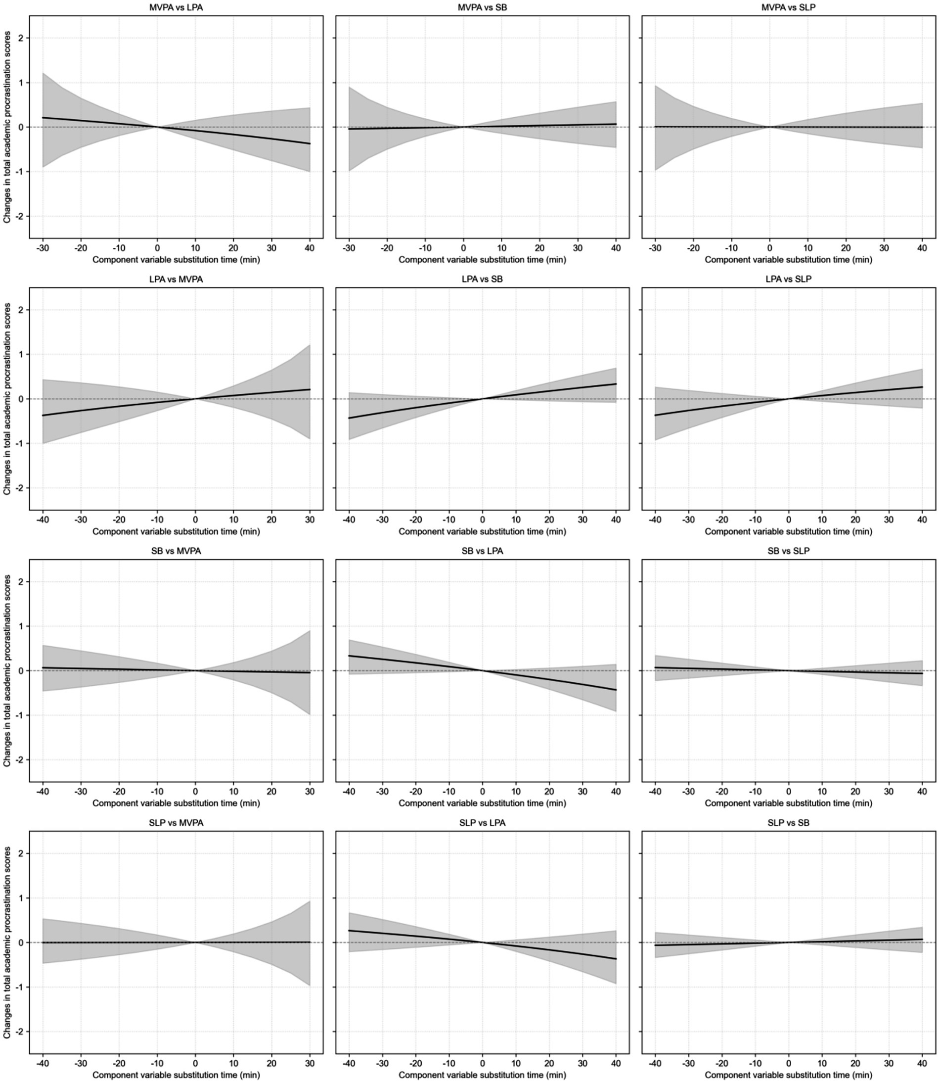 In summary, the asymmetry of substitution effects between MVPA and other activities provides new perspectives for understanding the relationship between physical activity and academic procrastination. Future research could further investigate the neural, psychological, and social-environmental mechanisms that might underlie this asymmetry to develop more precise interventions for reducing academic procrastination and improving physical and mental health.
