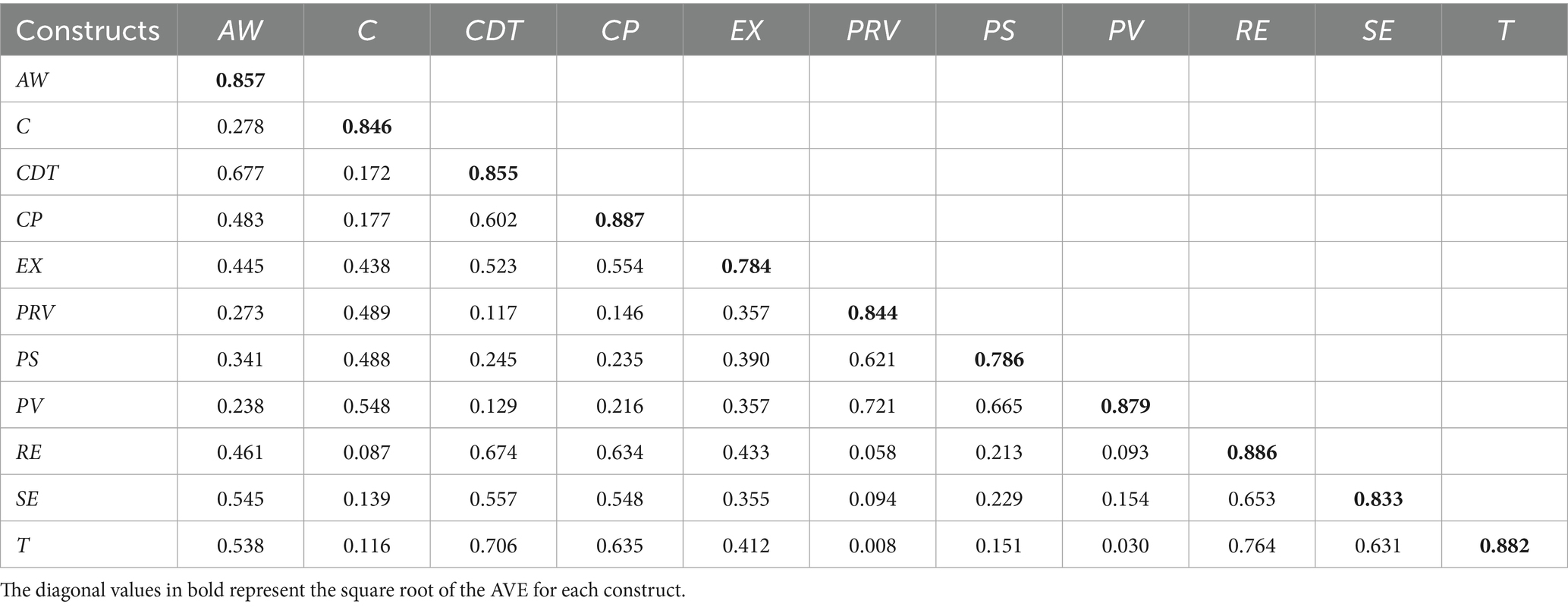 97. Henseler, J, Ringle, CM, and Sarstedt, M. A new criterion for assessing discriminant validity in variance-based structural equation modeling. J Acad Mark Sci. (2015) 43:115–35. doi: 10.1007/s11747-014-0403-8