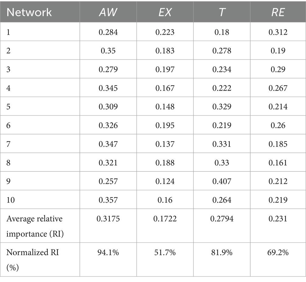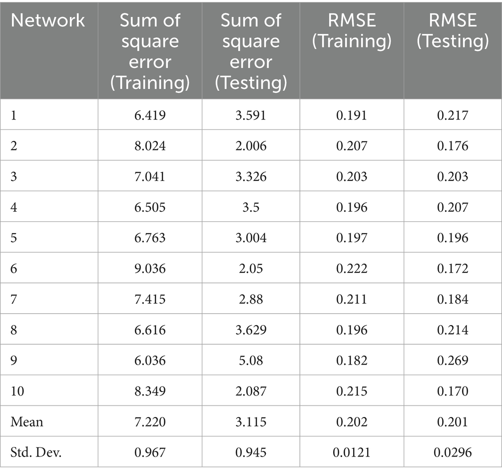 The study used an artificial neural network (ANN) as a supplementary method to re-examine and analyze the research model. This method is characterized by its ability to analyze complex relationships (90), both linear and nonlinear, and provides accurate predictive results compared to traditional methods such as linear regression (91). It is also capable of handling issues caused by inadequate information. Moreover, many studies (92–94) have used an ANN to examine the relationships between variables in the context of cybersecurity and digital transformation research.