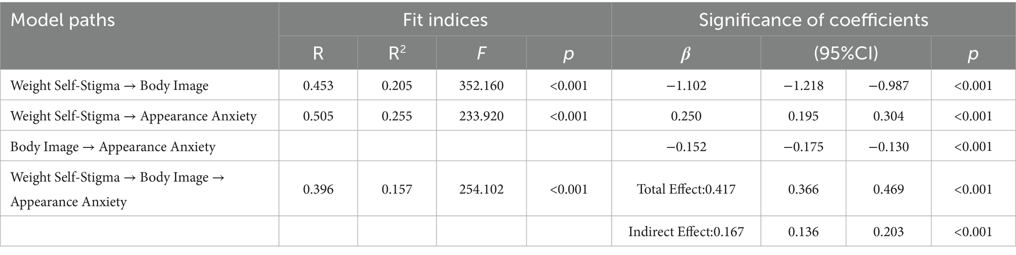 3.3 Mediation model of body image in the relationship between weight self-stigma and appearance anxiety: a variable-centered analysis