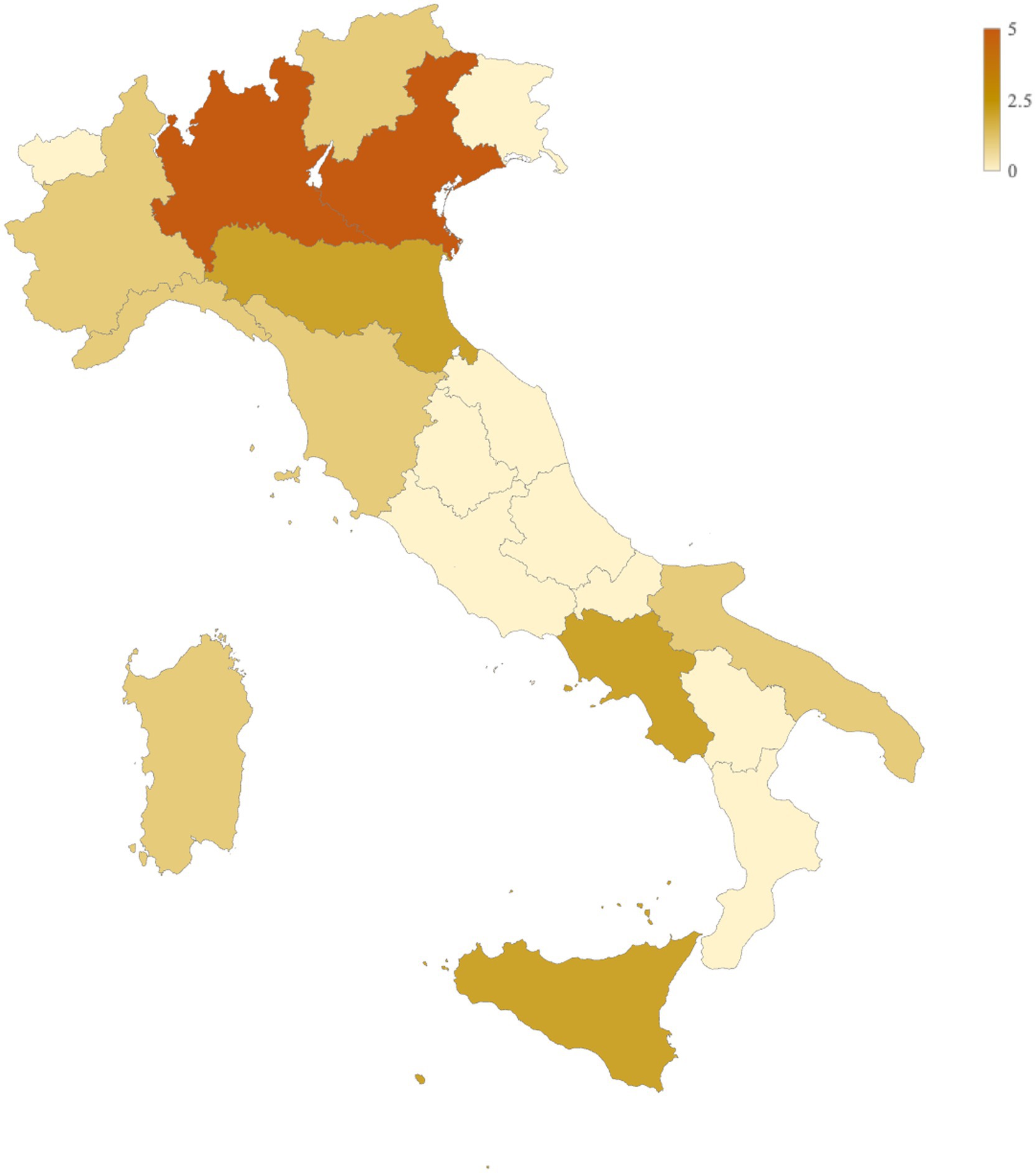 A total of 22 pharmacies across 11 Italian regions participated in the survey (Figure 1). The majority were located in northern Italy, including Lombardy (n = 5/22, 22.73%), Veneto (n = 5/22, 22.73%), Piedmont (n = 1/22, 4.55%), Trentino-Alto Adige (n = 1/22, 4.55%), and Liguria (n = 1/22, 4.55%). Pharmacies from central (Emilia-Romagna: n = 2/22, 9.09%; Tuscany: n = 1/22, 4.55%) and southern regions (Puglia: n = 1/22, 4.55%; Campania: n = 2/22, 9.09%; Sardinia: n = 1/22, 4.55%; Sicily: n = 2/22, 9.09%) were also included, achieving broad geographical representation.