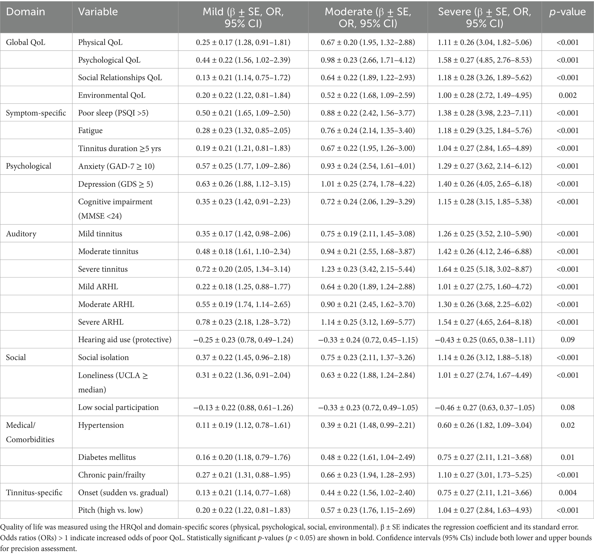 3.3 Multivariable associations of ARHL and tinnitus with QoL and psychosocial outcomes