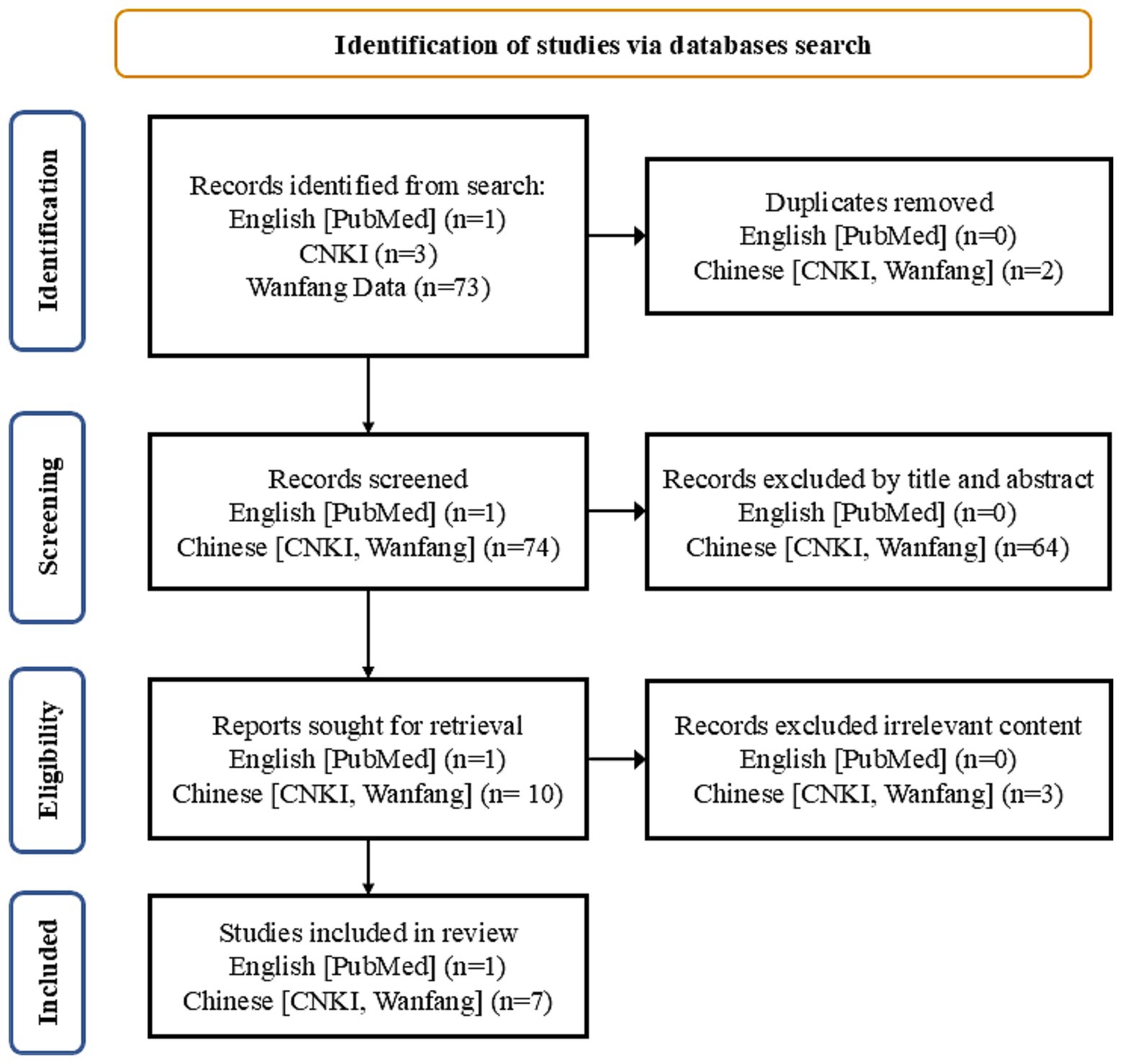 Searches were conducted in both Chinese and English databases, including China National Knowledge Infrastructure (CNKI), Wanfang Data, and PubMed. Primary search terms included ‘DeepSeek,’ ‘artificial intelligence,’ ‘primary care,’ ‘general practitioners,’ and MeSH term ‘Clinical Decision Support Systems.’ The search covered articles published between January 1, 2023, and April 14, 2025, reflecting the period when AI-based clinical decision tools were increasingly adopted in China. Inclusion criteria were: (1) publications in English or Chinese; (2) articles or reviews; (3) studies focused on the use of DeepSeek in primary care. Exclusion criteria were: (1) studies focused on medical education; (2) conference papers, theses, commentaries, editorials, and letters. Details of the literature search and screening process are presented in Figure 1. Furthermore, official websites of provincial Health Commissions were searched for AI policies and reports related to DeepSeek deployment.
