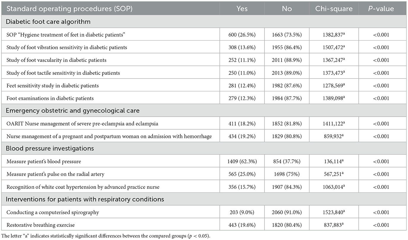 Table 6. Utilization of standard operating procedures in the management of patients with chronic heart failure, cerebral palsy and stroke.