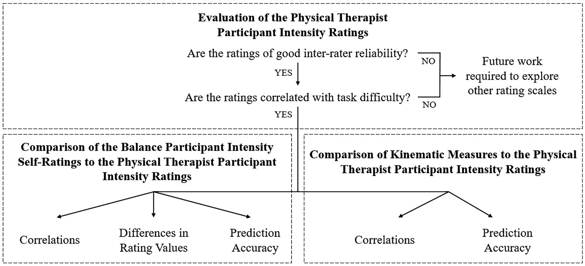 Figure 2. An overview of the analysis components. After assessing the PT ratings, these ratings were then compared to self-ratings or kinematic measures.