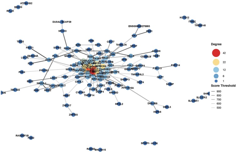 Further functional enrichment analysis revealed that downregulated genes dominated the transcriptomic changes, leading to the suppression of multiple biological processes, including inflammatory responses, cell proliferation, and differentiation. Among the top 20 enriched pathways, significant enrichment was observed in Toll-like receptor signaling, cytokine–cytokine receptor interactions, and apoptosis-related pathways in Figure 2. Additionally, gene-disease association analysis identified 231 genes linked to motor neuron diseases and 8,725 genes associated with vascular dementia, highlighting the potential of tDCS + DTT in treating not only stroke-related impairments but also neurodegenerative conditions affecting both motor and cognitive functions. Key inflammation-related genes, including PPP1R15A, BCL3, GADD45B, NFKBIA, were found to form a tightly connected regulatory network, suggesting their critical roles in mediating the treatment effects in Figure 3. Furthermore, pathway analysis revealed links to β-amyloid metabolism, suggesting that tDCS + DTT might influence β-amyloid production and clearance, potentially contributing to cognitive improvements in neurodegenerative conditions in Figure 4.