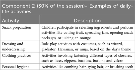 Component 2 - daily-life activities (30% of the daily session)