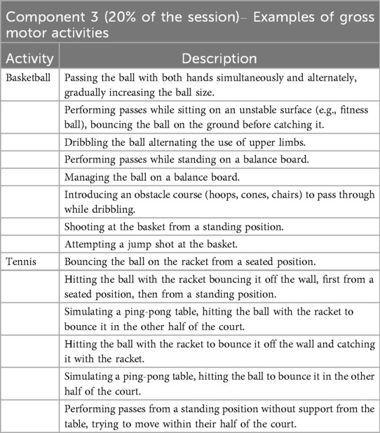 Component 3 - gross motor activities (20% of the daily session)
