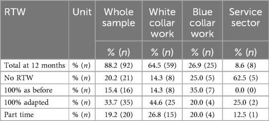 2. Are there differences in the RTW according to sociodemographic factors such as age, sex, or type of work?