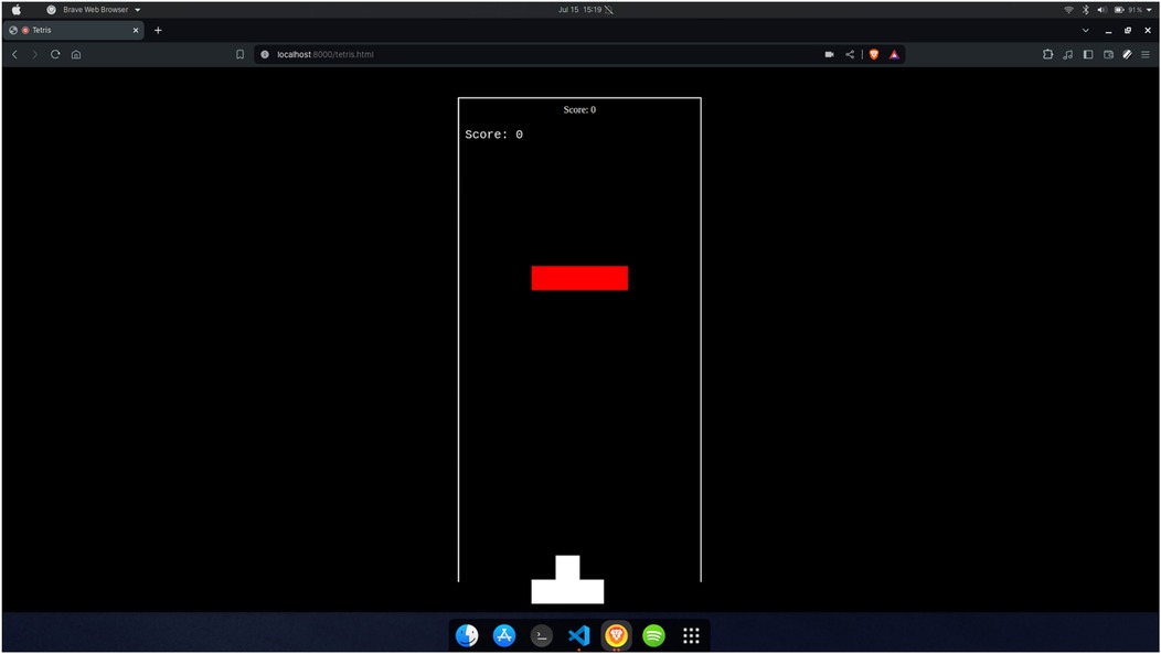 The Tetris game, shown in Figure 7, can be selected from the home page after user authentication. It is a recreation of the classic Atari game, where randomly shaped blocks fall from the top of the screen, and the player must align them to form complete, gap-free rows at the bottom. The gesture recognition module tracks both hands, labelled Hand 1 and Hand 2 (Figure 5), to control the game. For Hand 1, a thumbs-up gesture moves the falling piece to the right, while a thumb-down moves it to the left. For Hand 2, a thumb-up rotates the piece to the right, and a thumb-down rotates it to the left. The game challenges users to make quick, accurate hand movements, requiring fast decision-making to correctly position and orient each block. Once the desired gesture is performed, the user must move their hands away from the screen to prevent unintended changes.
