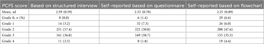 Table 5. Comparison of the questionnaire-based and the flowchart-based version of the PCFS scale, n = 437.