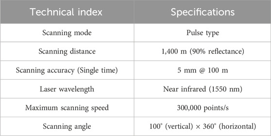 In recent years, there has been rapid advances in remote sensing technology, giving it the ability to capture the geological structure at a macro level. This is why it is increasingly applied in the quantitative study of active faults (He, 2011; Klinger et al., 2011; Bello et al., 2022, Bello et al., 2021; Crosby et al., 2020). However, remote sensing satellite images are affected by resolution, so they cannot meet the requirements of the minor geomorphologic changes of active faults. The development of high-resolution topography technologies allows for the rapid acquisition of high-precision topographic and geomorphic data (Jiang et al., 2018; Bi et al., 2011; Wang et al., 2018), such as light detection and ranging (LiDAR) (Carter et al., 2007; Haddad et al., 2012; Baran et al., 2010; Chen et al., 2014; Liu et al., 2013; Ren et al., 2014; Jiang et al., 2017; Xu et al., 2022) and unmanned aerial vehicles (UAV) (Jiao et al., 2016a; Uysal et al., 2015; Cirillo et al., 2022). Tape measures, flatbed plotters, and total stations are the most commonly used instruments in traditional topographic and geomorphic survey, and these measurements can be performed on a single point or within a small range at sub-meter accuracy. However, these methods are limited by the need for manual operation and low efficiency. The rapid development of measurement technology has led to the gradual evolution of topographic and geomorphic measurement technology from the traditional total station to the present real time kinematic (RTK) (Cirillo et al., 2022); the efficiency and precision of the three-dimensional (3D) LiDAR (Baran et al., 2010; Jiang et al., 2017; Xu et al., 2022), UAVs (Baran et al., 2010; Jiao et al., 2016a; Cirillo et al., 2022; Westoby et al., 2012; Johnson et al., 2014), and other measuring methods have been improved significantly. The LiDAR scanning system is a type of optical remote sensing technology. In contrast with radio waves emitted by traditional radar, the LiDAR scanning system collects the surface information of the target according to the optical signal. LiDAR is a remote sensing system for active detection; it transmits laser pulses to the surface of the object to be measured and processes the optical signal to determine the features of the object. It can record relevant information during measurement in real time, such as the scanning angle, distance, and point coordinates.