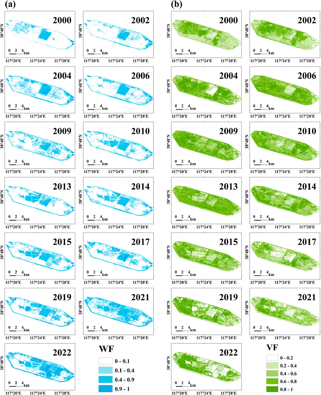4.4 Long-term changes of WF and VF in Beidagang Wetland during 2000-2022