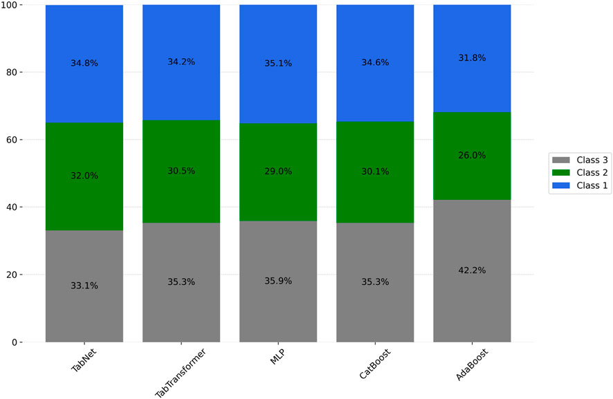 The Friedman test was employed in parallel to compare the performance of each model based on multiple evaluation metrics. This test ranks the models by considering their performance across all metrics (classification accuracy, AUC-ROC, Cohen’s kappa, and feature importance) and identifies statistically significant differences between them (Hwang and Yoon, 1981). This approach allows for the selection of the best-performing model without the need for aggregation into a single composite score.