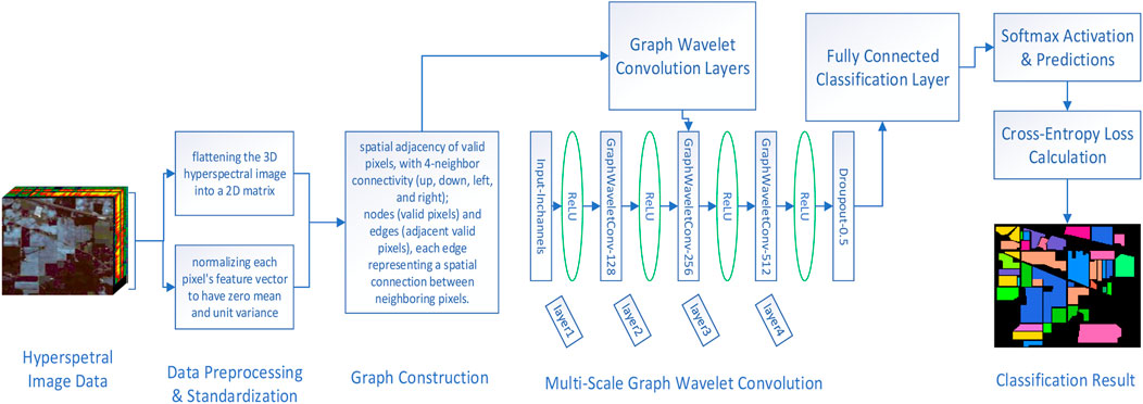 Keywords: graph wavelet transform, hyperspectral image classification, spectral-spatial fusion, multi-scale graph convolutional network, deep learning