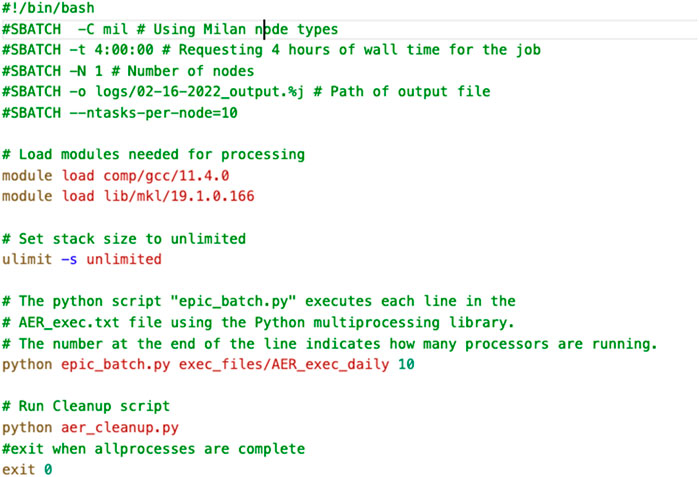 We determine the maximum number of tasks by slowly increasing the tasks per node until the memory limit is exceeded. Several tests are run with different epic inputs. Once a limit is determined, we reduce that number by 10% to ensure a safe margin. Memory used in a single Slurm session can be found in the output file produced for each session.