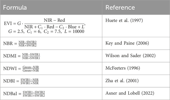 , six spectral indices (Table 2), and elevation data. The combination of raw spectral bands and indices enhances class separability by capturing diverse physical and biochemical surface characteristics (Zhu and Woodcock, 2012), while elevation data accounts for topographic effects on reflectance and land cover differentiation (Balthazar et al., 2012).