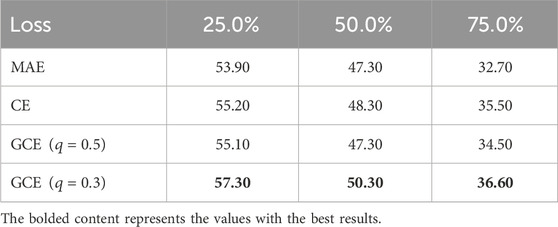 Loss function analysis (Table 4) uncovers key mechanisms: GCE with