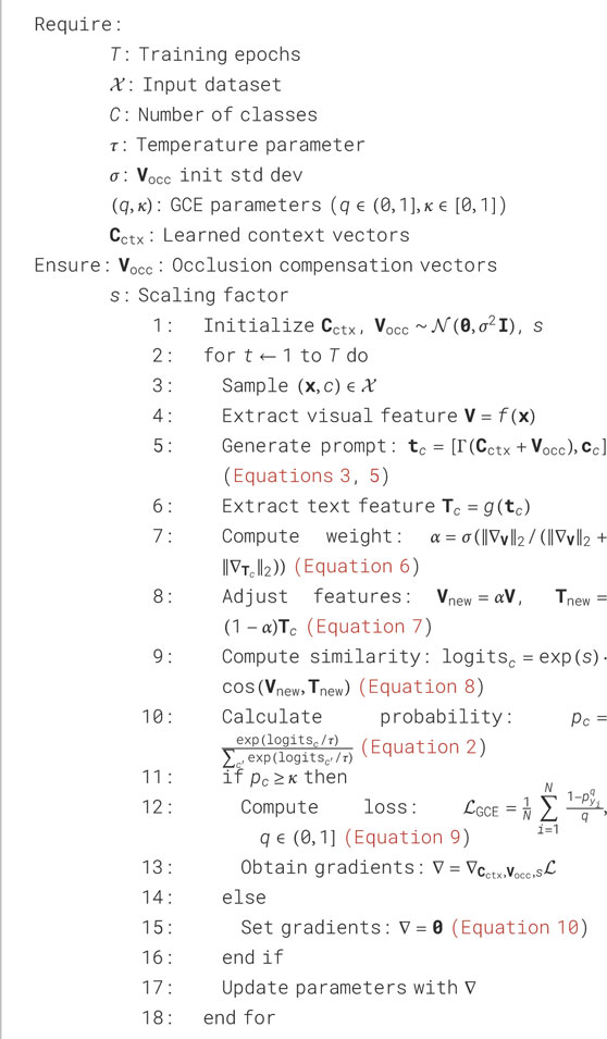 which dynamically handles visual occlusion scenarios, significantly enhancing representation capability with missing visual information. This design allows prompts to perceive and compensate for occlusion interference, improving text-visual feature correlation under occlusions.