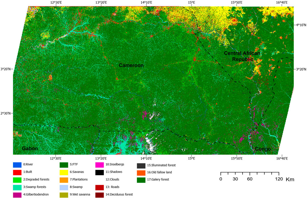 Gond, V., Betbeder, J., Fayolle, A., Viennois, G., Cornu, G., Réjou-Méchain, M., et al. (2015). New insights in tropical forest diversity mapping in Central Africa using low resolution remote sensing.