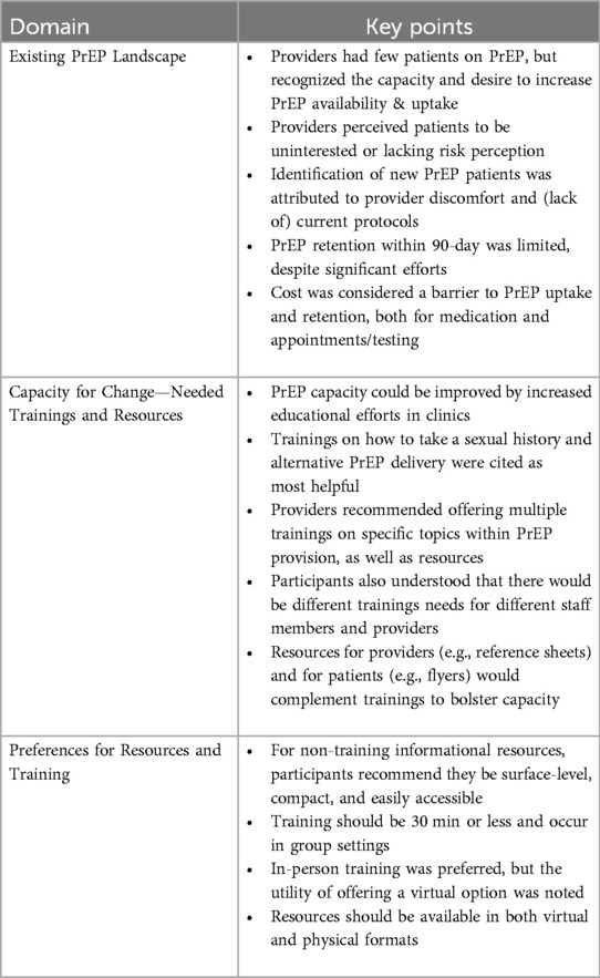 Table 2. Deductive domains and key points relating to PrEP implementation in title X clinics in Atlanta, GA, USA.