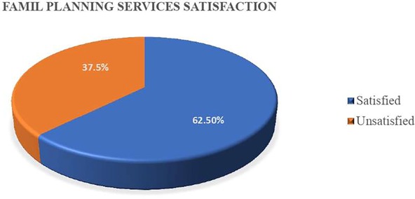 Among the 379 respondents, 62.5% (95% CI: 58–67.5%) were satisfied with the family planning services provided (Figure 2).