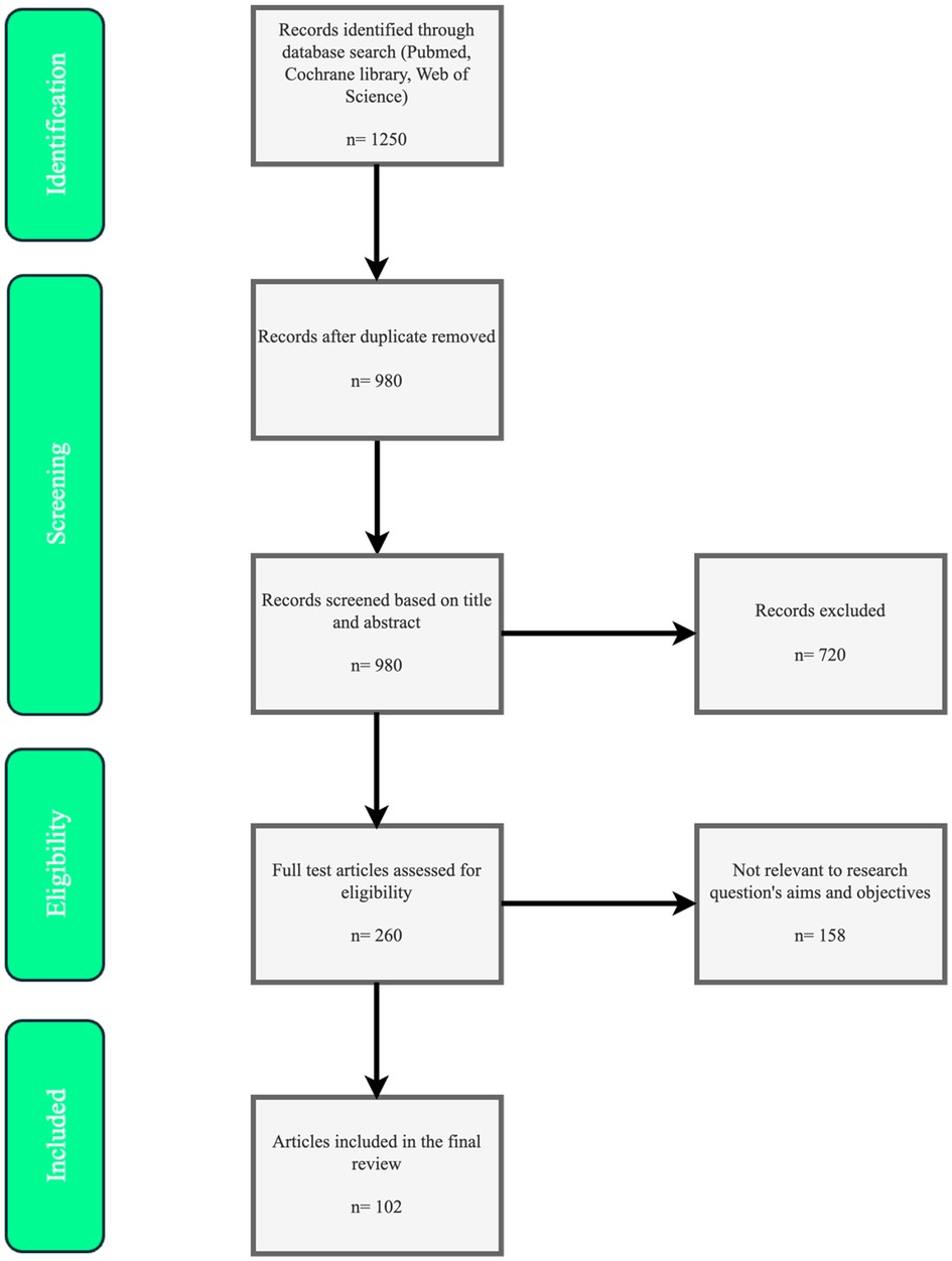 This narrative review adopted elements from systematic review methodologies to reduce selection bias and ensure a robust bibliographic strategy, as recommended for enhancing narrative reviews (16). A comprehensive literature search was conducted from January 2015 to October 2025 using PubMed (Bethesda, Maryland, USA; accessing MEDLINE, PubMed Central, and other NCBI databases), Cochrane Library (London, UK), and Web of Science (Philadelphia, Pennsylvania, USA; Clarivate). Search terms included “menopause pharmacological therapy,” “hormone replacement therapy risks benefits,” “non-hormonal menopause treatments,” “vasomotor symptoms pharmacology,” “ovarian aging modulators,” and related variants, combined with Boolean operators (AND/OR) for precision.