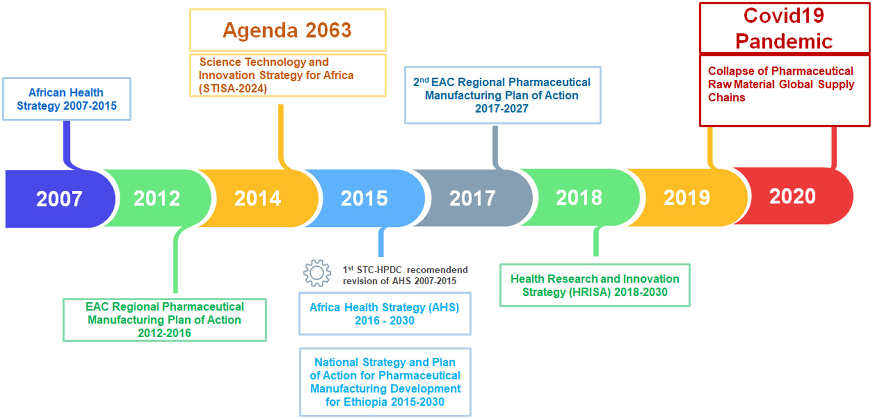 Hodge (2011) argued that the post-war development drive reflected imperial policy to boost local productivity and output. The imperial government drove the commodity value chains that encouraged higher local productivity for food and raw materials to meet British and colonial needs. Of particular importance to this study, MacLeod (1996) observed that British and Indian science suffered from poor contact with manufacturing interests. The same phenomenon can be claimed for Africa, more so in the pharmaceutical sector (see local API manufacturing challenges section).