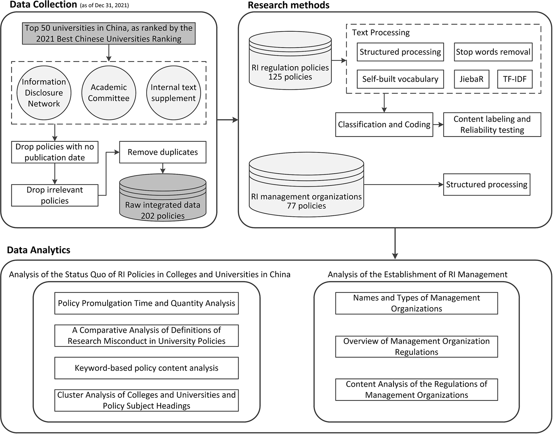 a. Main: We obtained available relevant policy documents related to RI and organizations responsible for RI treatment from the universities' official websites including the information disclosure page and academic committee page.