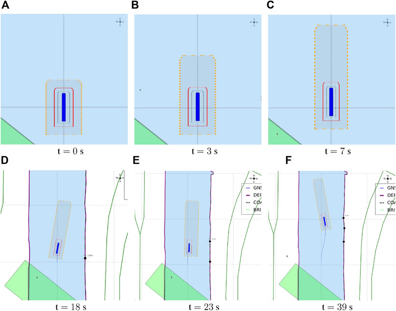 10Situation-specific policies include issuing a warning whenever a vessel’s SD0 threatens to exceed the lane boundaries (+ tolerance). If no correction occurs, and the manoeuvre is still ongoing, termination of the manoeuvre is required, and some “safe fallback mode” could be enabled. As seen in Result 4.6, part of this policy is visualised on the map by changing the colour of the lanes.