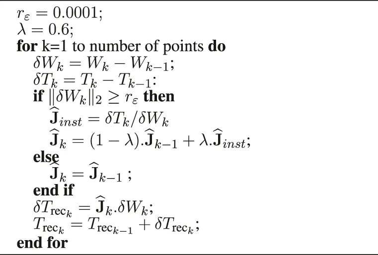 The parameter α is a scalar gain between 0 and 1 which defines the update speed of the Algorithm. When setting this parameter, a compromise must be found between convergence speed and robustness. If the variation of the input data is too small or null, the computation can become unstable. To avoid this instability, it is necessary to verify:A threshold is then introduced to ensure that the previous condition is verified:where rɛ must be set according to the application. If the threshold is not reached, the matrix is not updated and: