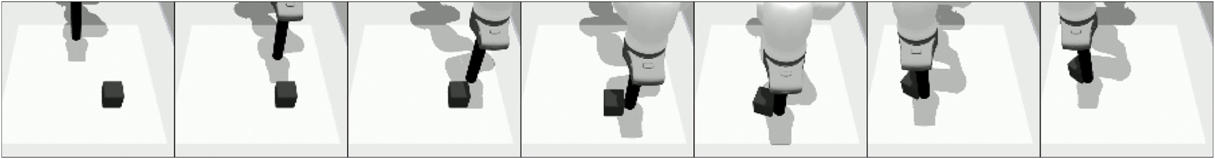 FIGURE 5. Example of one successful episode in the simulated setup. The image shows the observed images for steps 0, 4, 8, 12, 16, 20, 24.