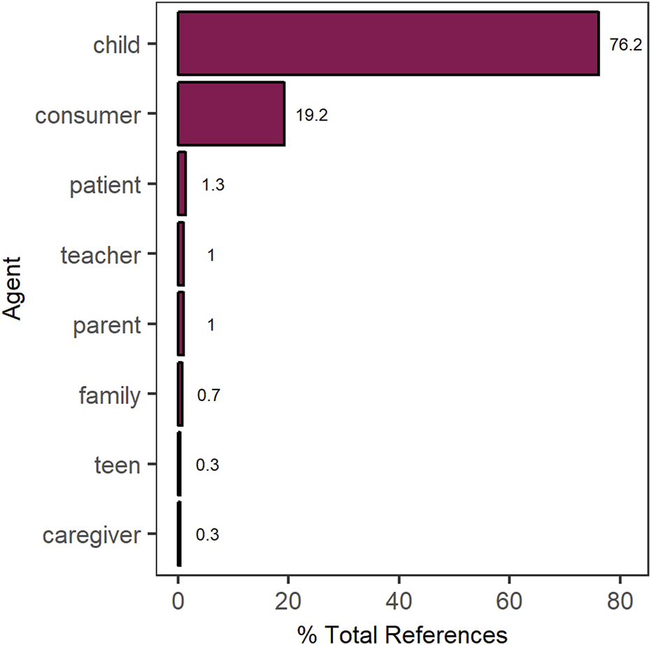 A total of 653 individual claims were identified, with a mean of 31 claims per robot (range: 5–75). For each claim, we identified the individual being referenced (Figure 3). Most claims focused on what the robot could do and how the child would benefit from social robot intervention. For example, “Aiko also could be your mentor to learn and develop your cognitive, emotional and social skills.” A minority of claims were centered around what the robot could do for a general consumer, e.g., “BUDDY is your personal assistant.” Claims referenced others, like parents or teachers, only rarely.