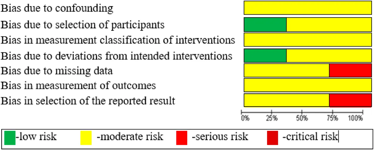 The similarity between the designs of the selected primary studies was satisfactory. The number of primary trials met the required minimum (at least two trials are needed to conduct a meta-analysis). In addition, the risk of bias was moderate and the level of internal validity was sufficient for all the selected non-randomized studies, according to the GRADE approach.