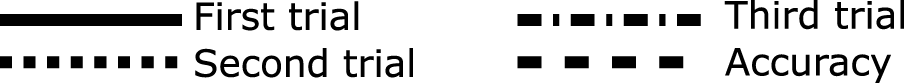 FIGURE 5. The picture explains the meanings of the different line styles used in the error graphs for ERoll, EPitch and EYaw. The legends in those graphs identify each IMU with a different color. The accuracy line, when present, shows the datasheet figure for maximum error so that it can easily be seen whether or not the actual error exceeds the datasheet figure.