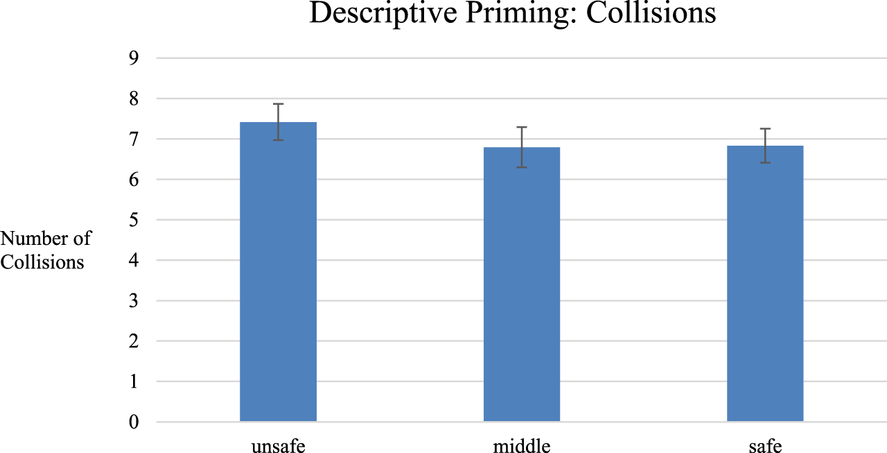 We conducted within-participants studies where a single participant completed a task with all three robot conditions (safe, unsafe, in-between). A within-participants design enabled participants to directly compare and contrast the robots between priming conditions, and further provided more statistical power by factoring out individual differences in driving ability, susceptibility to priming, etc.