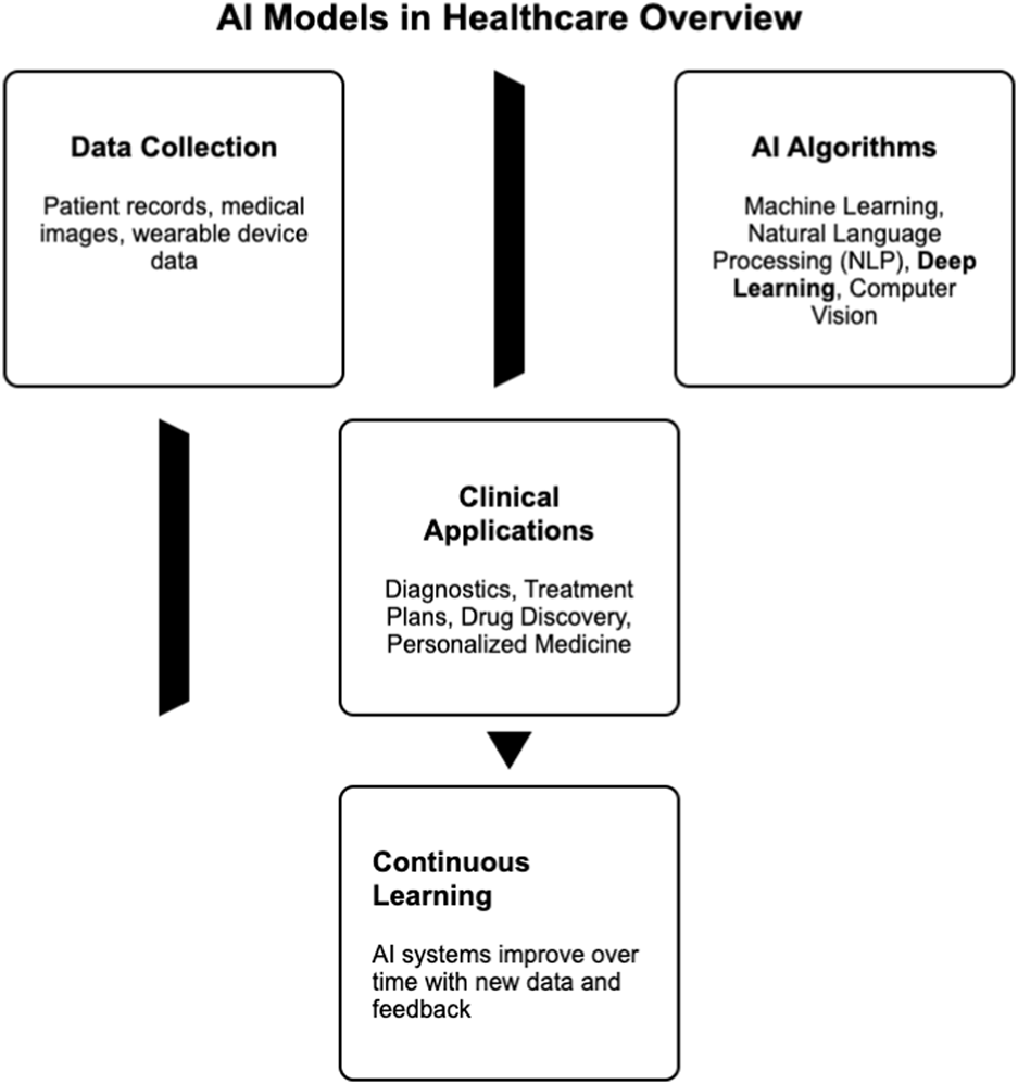 A diagram illustrating AI models in healthcare.