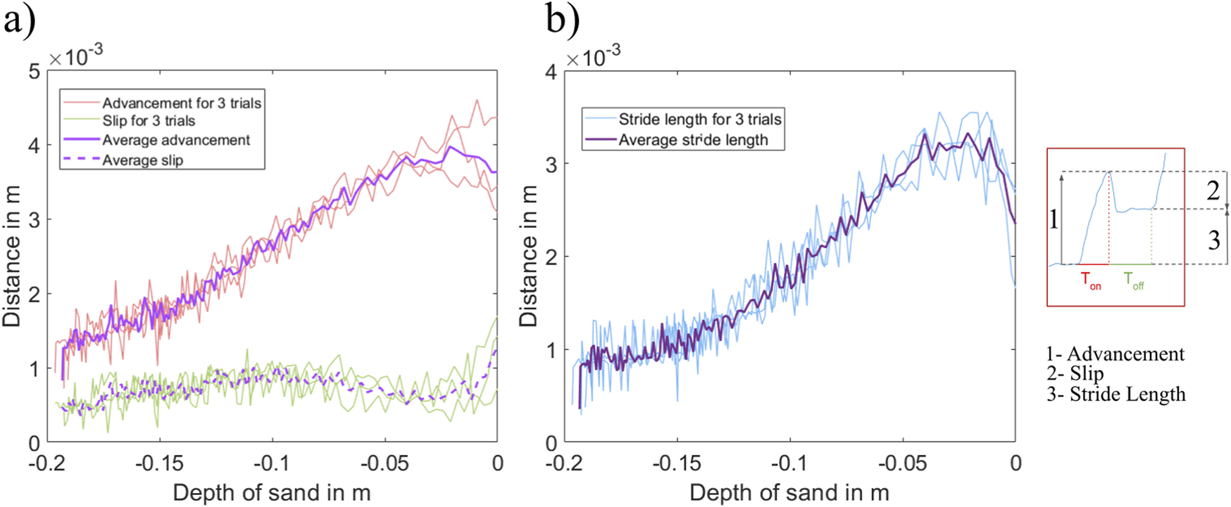 To evaluate the effect of the sand depth on these three components of the unburrowing cycle, we plotted the
