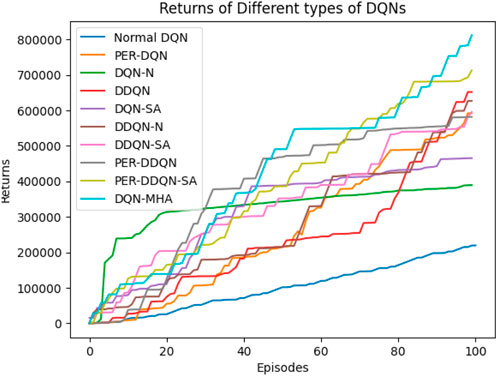 • Noisy networks (DQN-N): they enhance exploration efficiency by injecting noise into the network weights.
