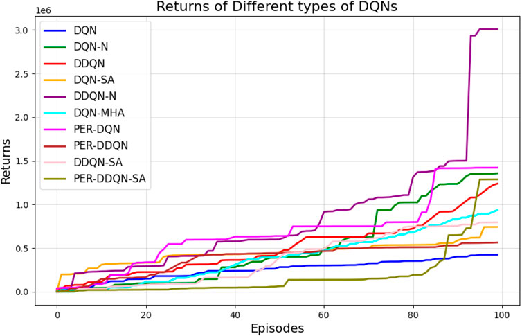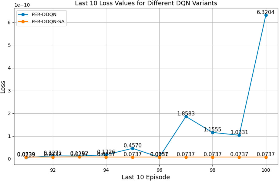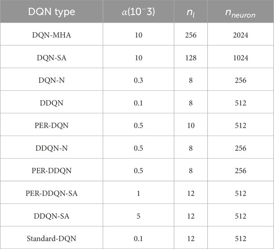 • PER-DDQN-SA: it integrates PER, DDQN, and self-attention to leverage the advantages of all three approaches.