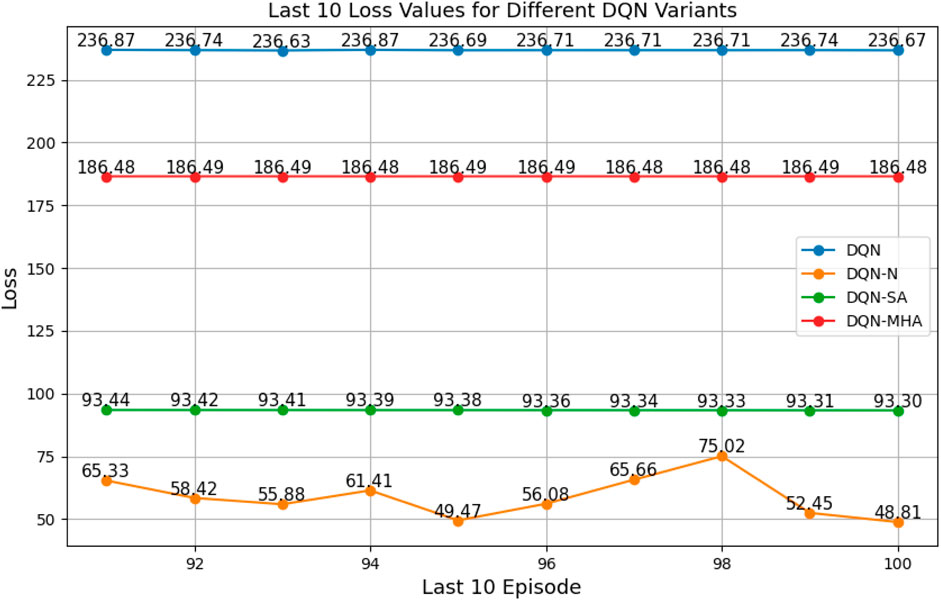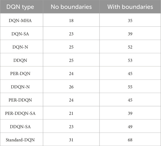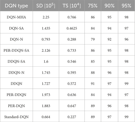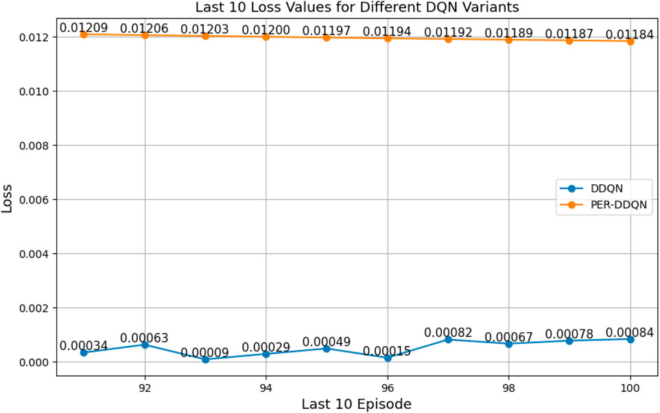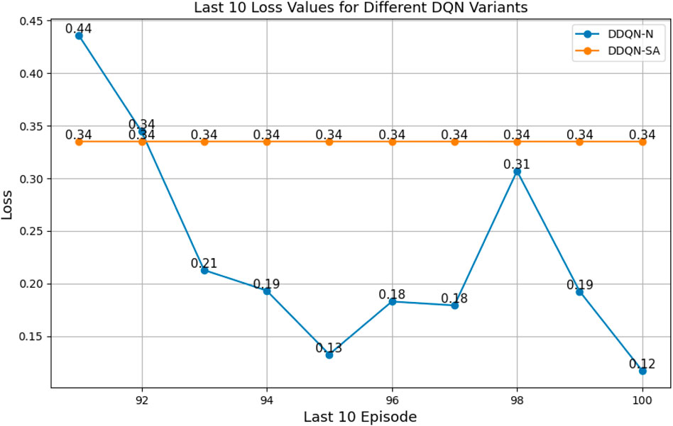 In summary, DDQN-N showed faster reward convergence, lower loss, and overall more reliable performance than DQN, as shown in Table 14.