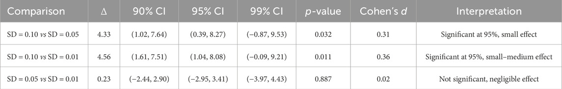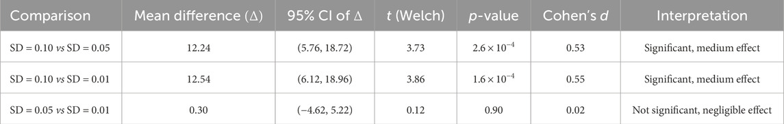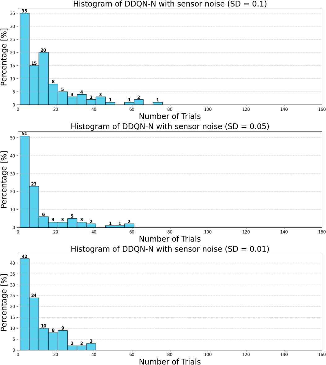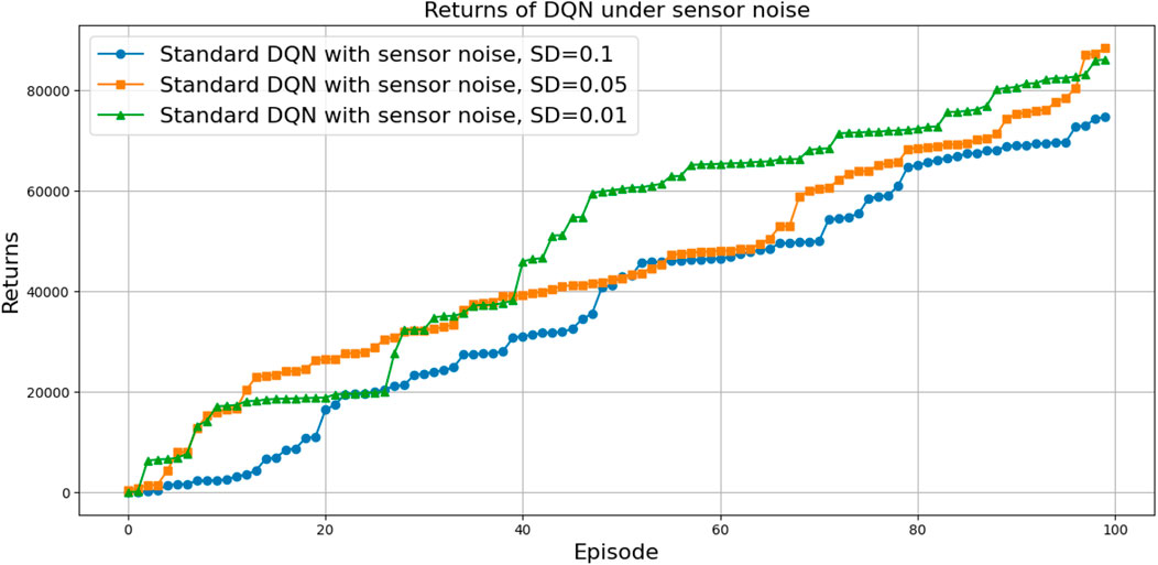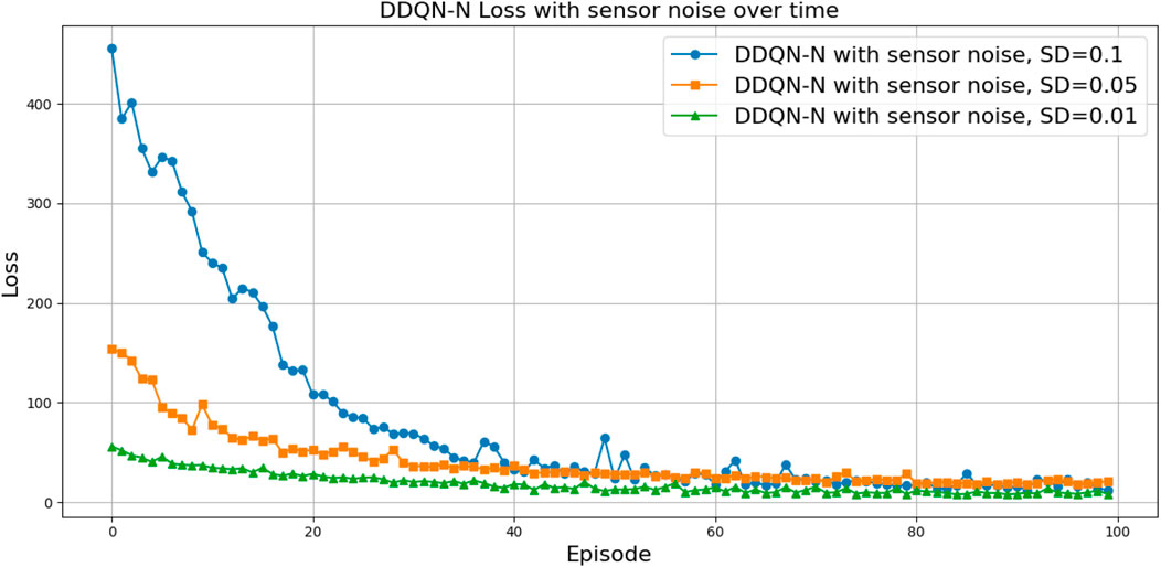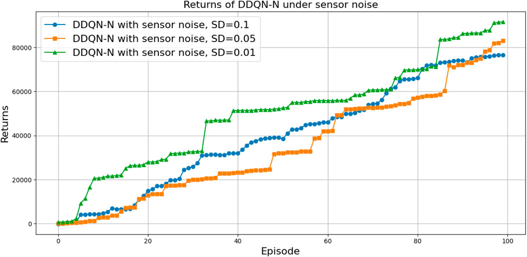 Table 13. Pairwise comparisons of the DDQN-N algorithm under different sensor noise levels. Mean differences